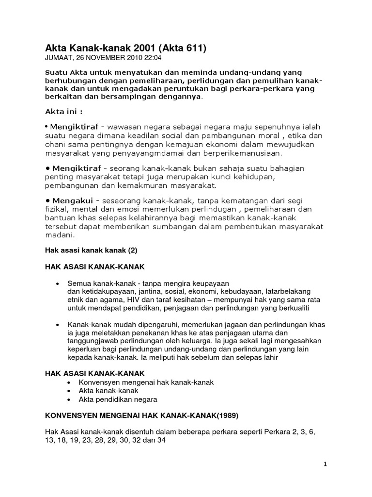 Akta Kanak Kanak 2001 Dan Peranan Pdf