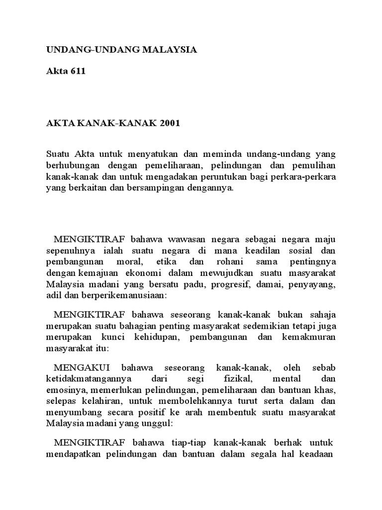 Download Free PDF Download PDF Download Free PDF View PDF. 611 Akta Kanak-Kanak 2001. 3069 enacted November 8 1978 codified at 25 USC.